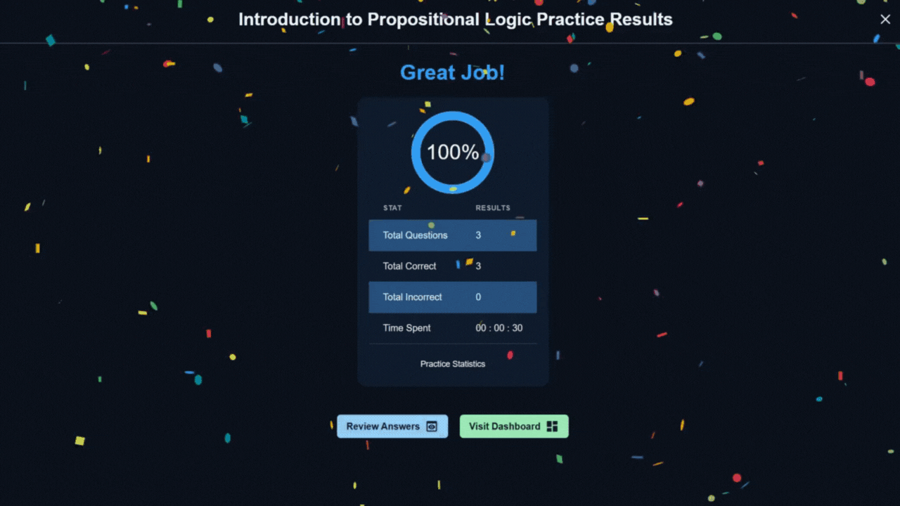 Every session is instantly graded and stored to your dashboard. Understand the reasoning behind every answer with step-by-step solutions and personalized feedback!